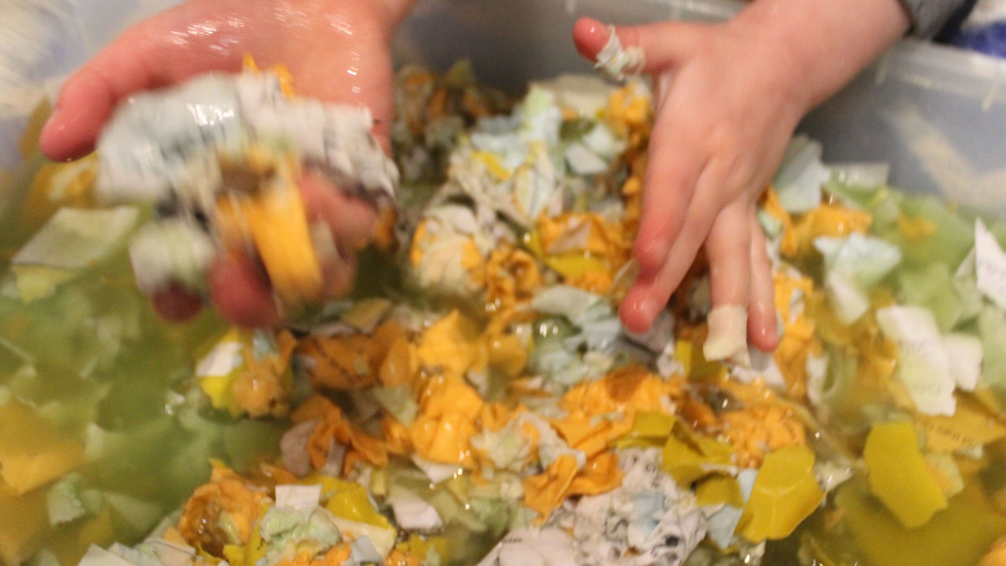 In time we come together in the hub’s workshop space, immediately the children are overflowing with ideas, suggestions and purpose to create and share their messages of sustainability.